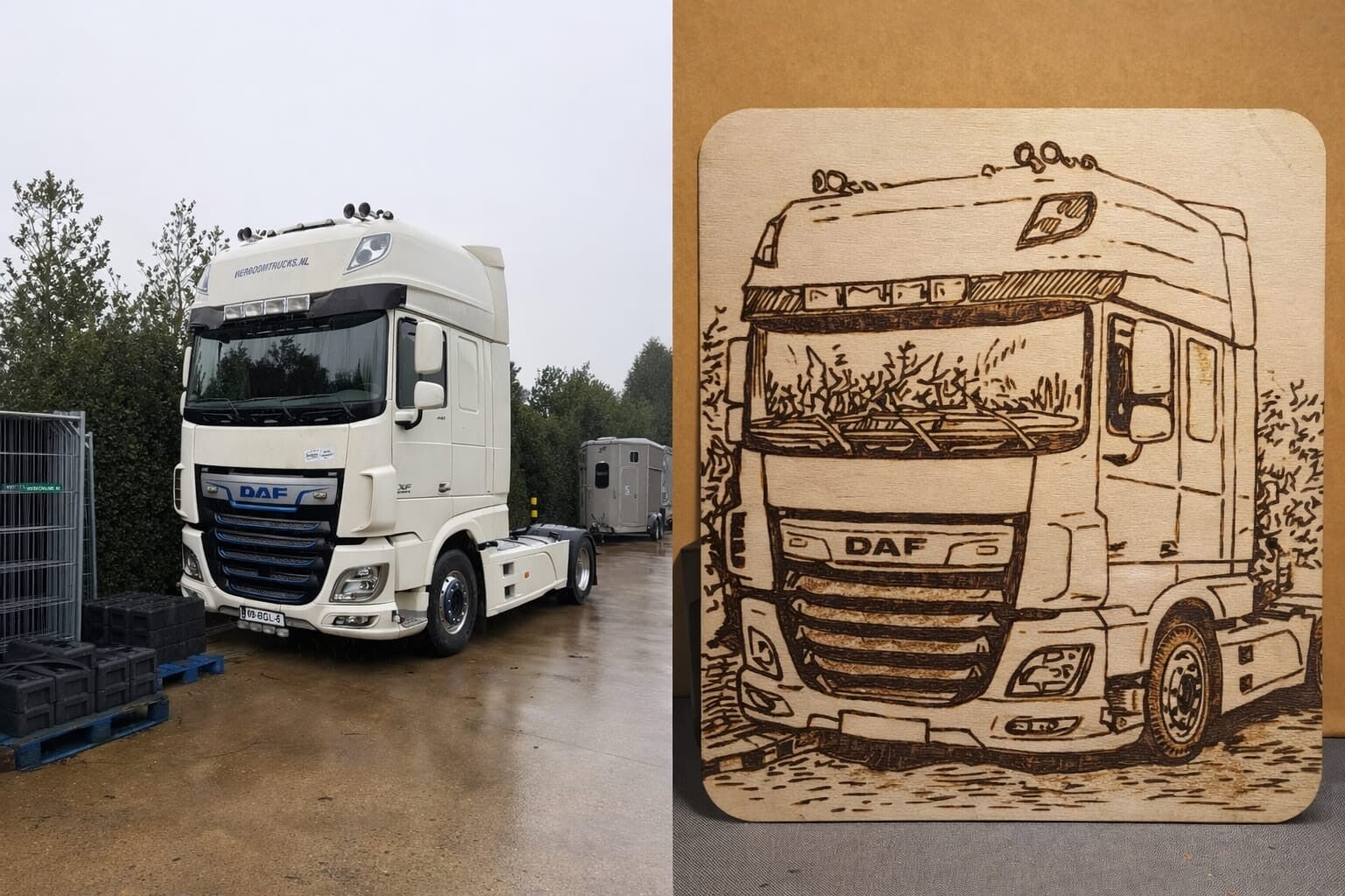 De ambacht van het houtbranden, ook wel pyrografie genoemd, geeft een tijdloze en warme uitstraling aan elke creatie. Van gedetailleerde portretten en persoonlijke boodschappen tot complexe patronen op hout; wij transformeren een eenvoudig stuk hout in een kunstwerk. Net als onze epoxy creaties, is elk houtbrandwerk een resultaat van intensief overleg en vakmanschap, volledig afgestemd op jouw persoonlijke voorkeur.